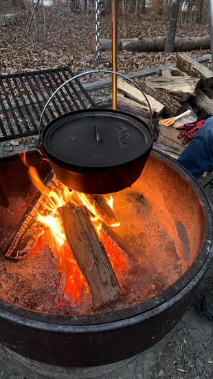 Camping in the Van is always a joy because there is very little setup. We did have to assemble a tripod we purchased so Bryan could try his hand at Dutch oven cooking over the fire. He made a pot of chili that was delicious. This was also made possible by the van and its lovely refrigerator. The van also allowed us to carry extra camp chairs so we could invite our friends who live in the area to enjoy an evening with us.