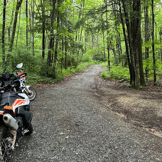 After leaving the restaurant, we were officially on our way to Swan Cabin. Despite a steady sprinkle and overcast skies affecting our visibility, we pressed on. The real challenge began as we started the gravel portion of our ride. Unbeknownst to me at the time, a huge rattlesnake, about 2 feet long, had crossed our path just as we turned onto the gravel road. I found out later during our conversations at the cabin.
